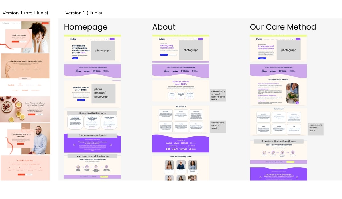 Illunis redesign impact: +92% LP conversions, +85% site traffic, and increased time-on-site at Culina Health.